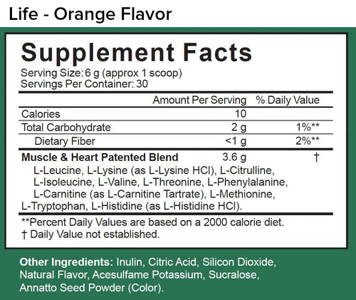 Life is designed to help prevent the natural decline of muscle and heart function that begins at around age 40. In clinical trials, Life has been shown to enhance physical function and muscle strength while supporting normal cardiovascular health.